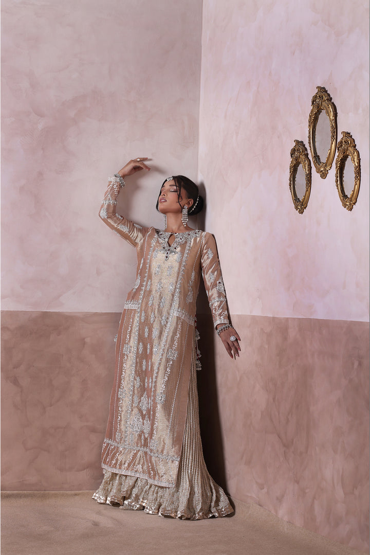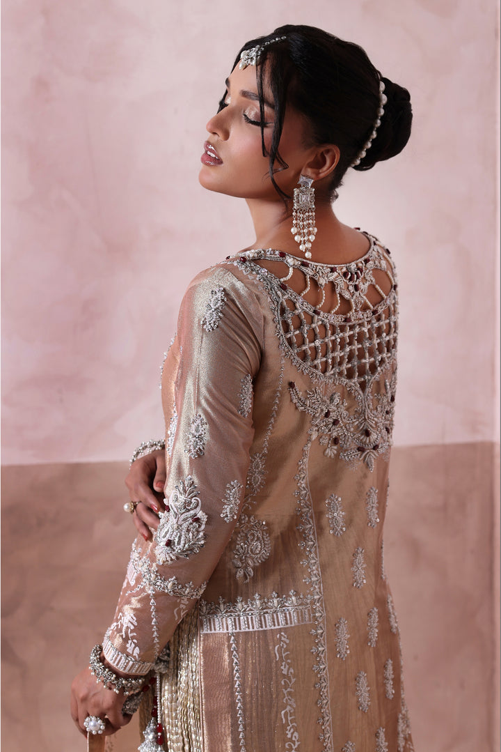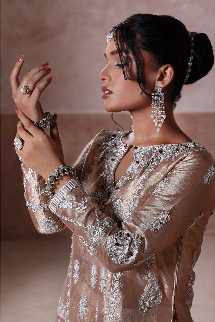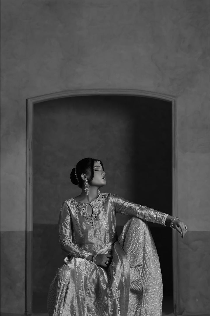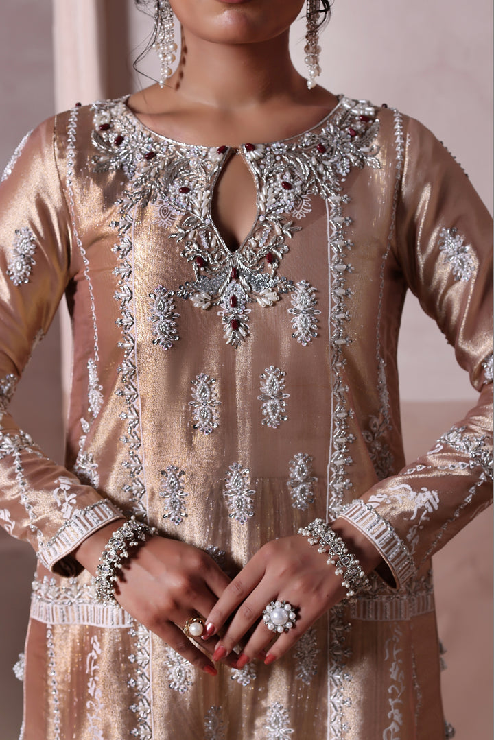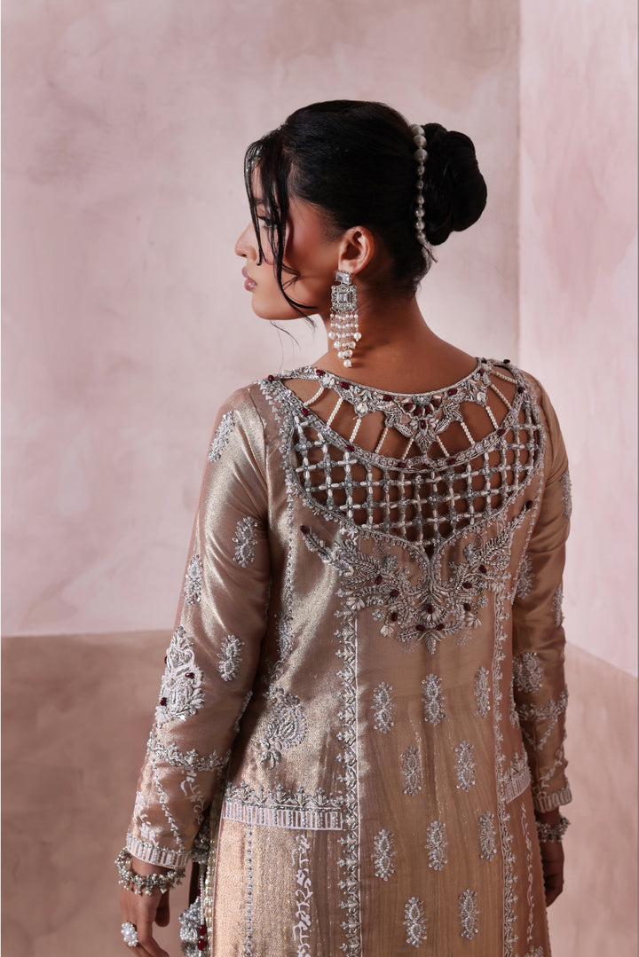 Diamante and Pearl Work: The addition of diamante and pearl work all over the top brings significant sparkle, glamour, and a touch of luxury to the outfit, making it stand out.