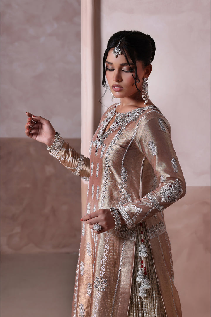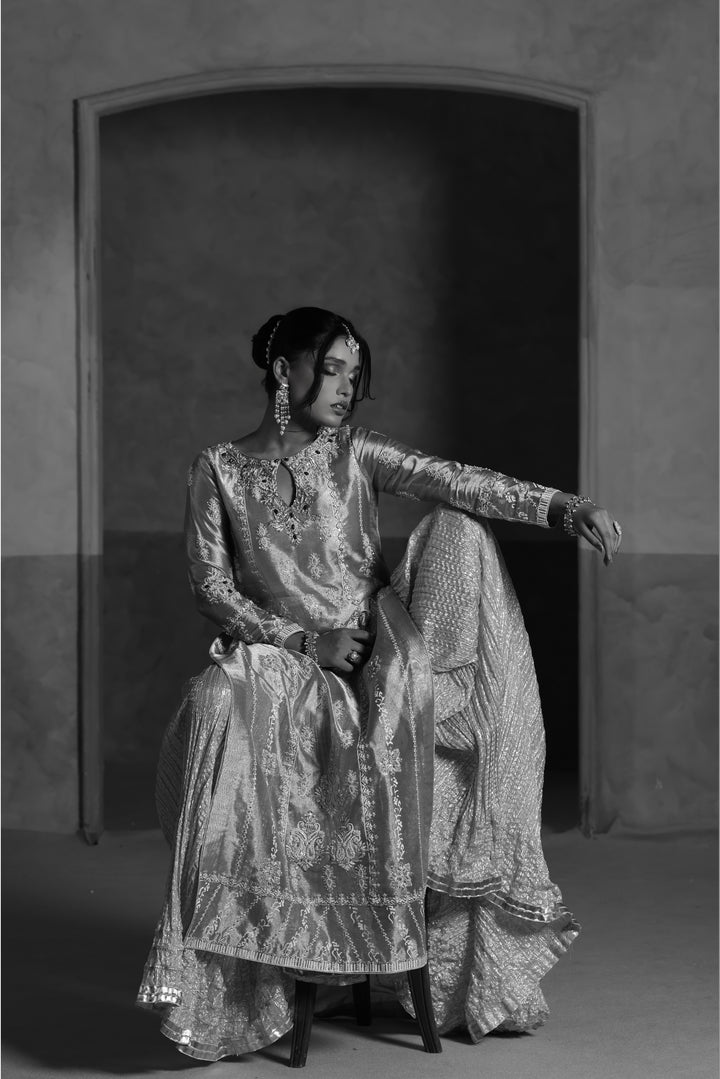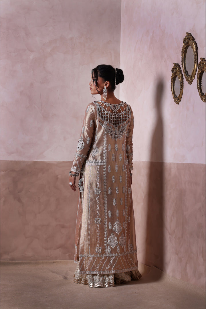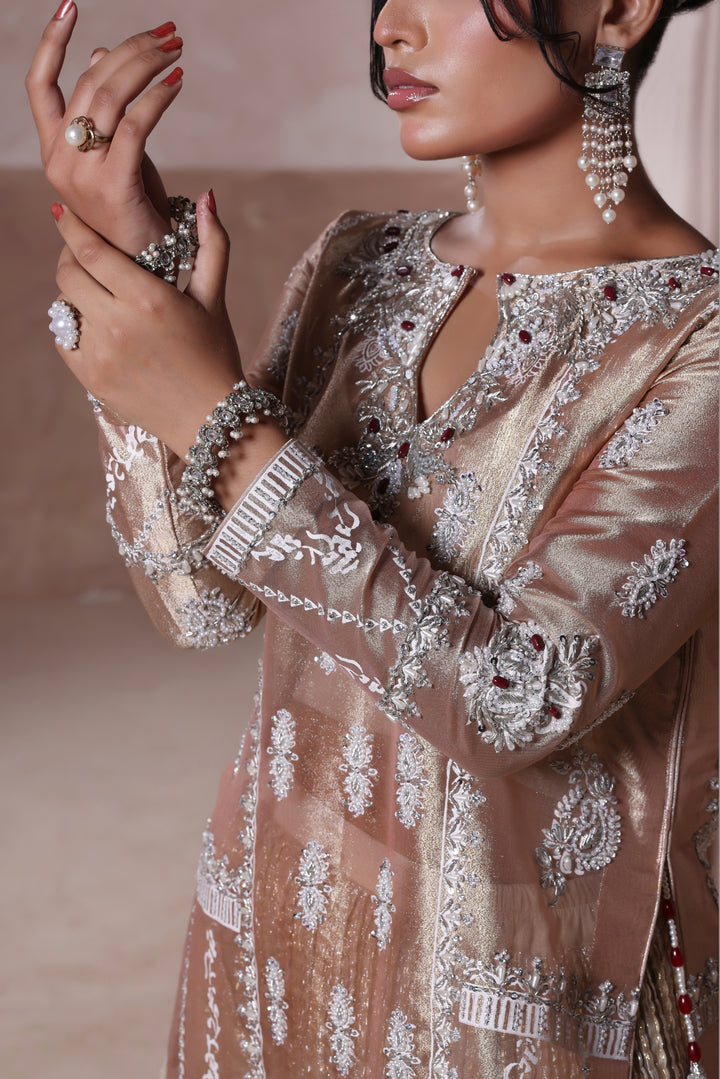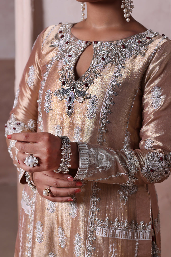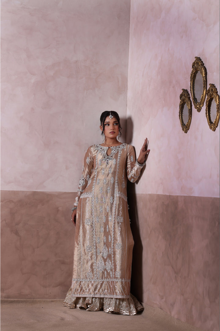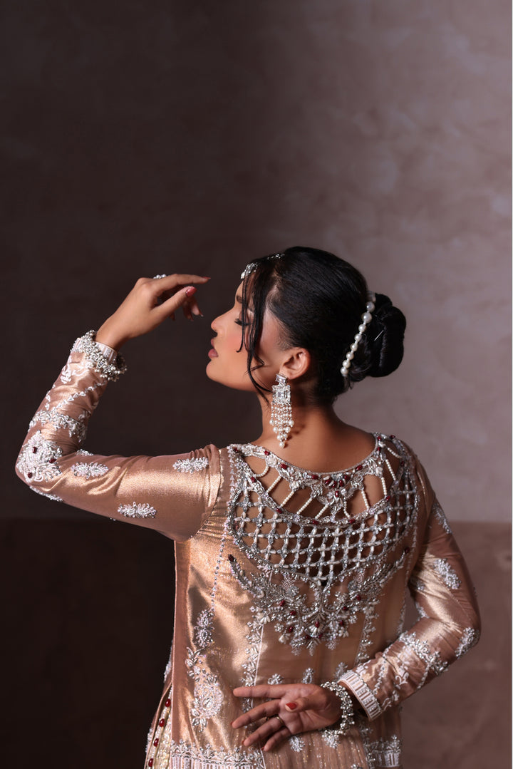 Diamante and Pearl Work: The addition of diamante and pearl work all over the top brings significant sparkle, glamour, and a touch of luxury to the outfit, making it stand out.