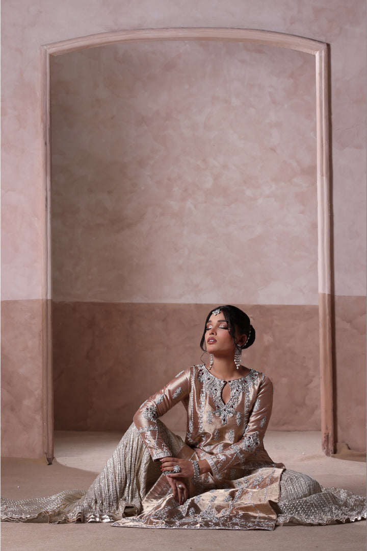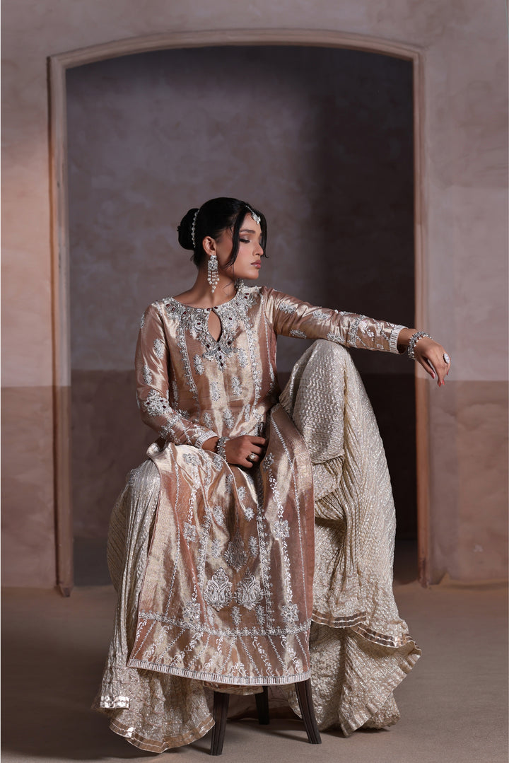 Lambha Tissue Top with Block Print: The block print on lambha tissue adds a unique texture and pattern to the outfit. Lambha tissue is a type of fabric that creates a light, airy feel.
